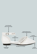 aouva rhinestone & pearl ankle strap flat sandals#color_white