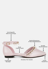 Aouva Rhinestone & Pearl Ankle Strap Flat Sandals