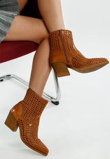 The block heel boots have an eccentric aesthetic with the woven detail. The soft cushion insoles and block heel make the boots a comfortable pair while the zipper fastening is convenient. The woven boots are stylish and would look lovely paired with stockings or beautiful socks for a chic look.