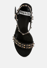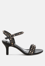 Morosa Studded Real Leather Kitten Heel Sandals