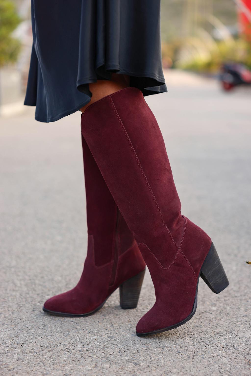 GREAT-STORM Burgundy Suede Leather Calf Boots