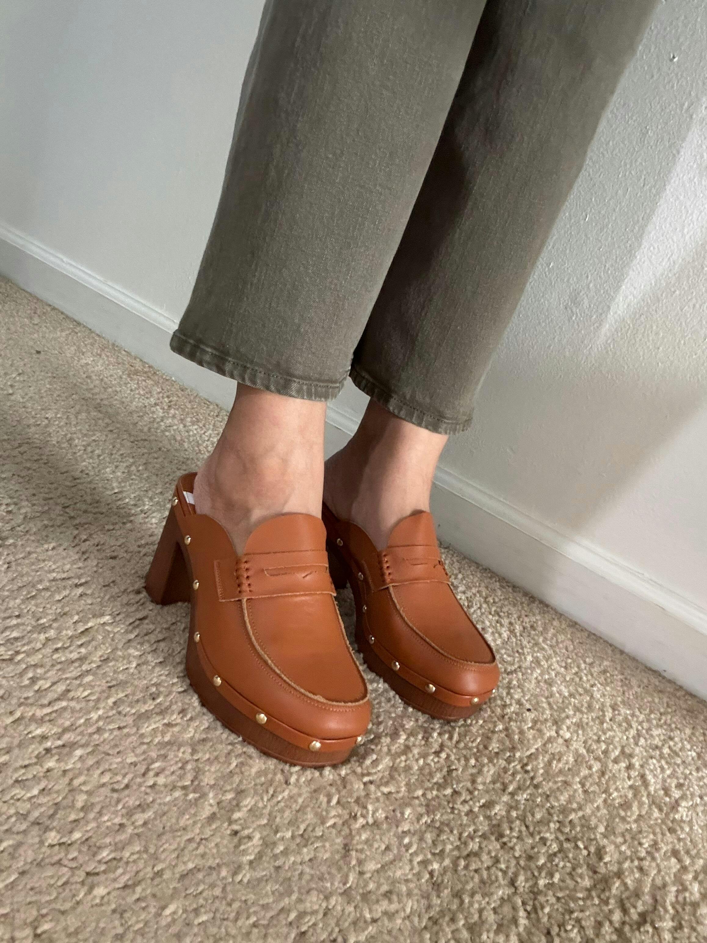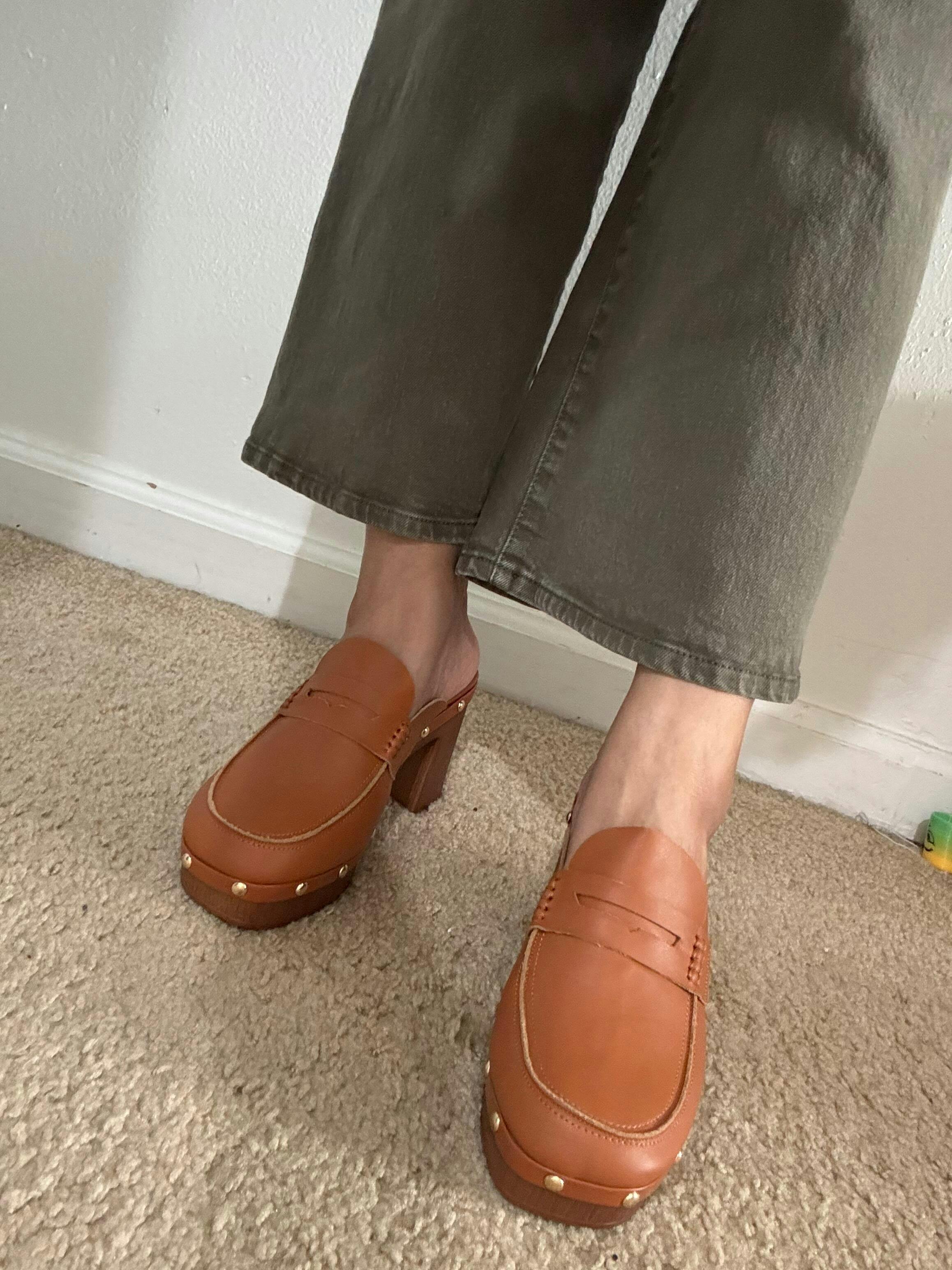 The leather clogs are the perfect amalgamation of style and elegance with the beautiful touch of stud embellishments. The light cushion insoles offer a relaxed fit and are a must-have pair in your shoedrobe with their versatile and comfortable quality.